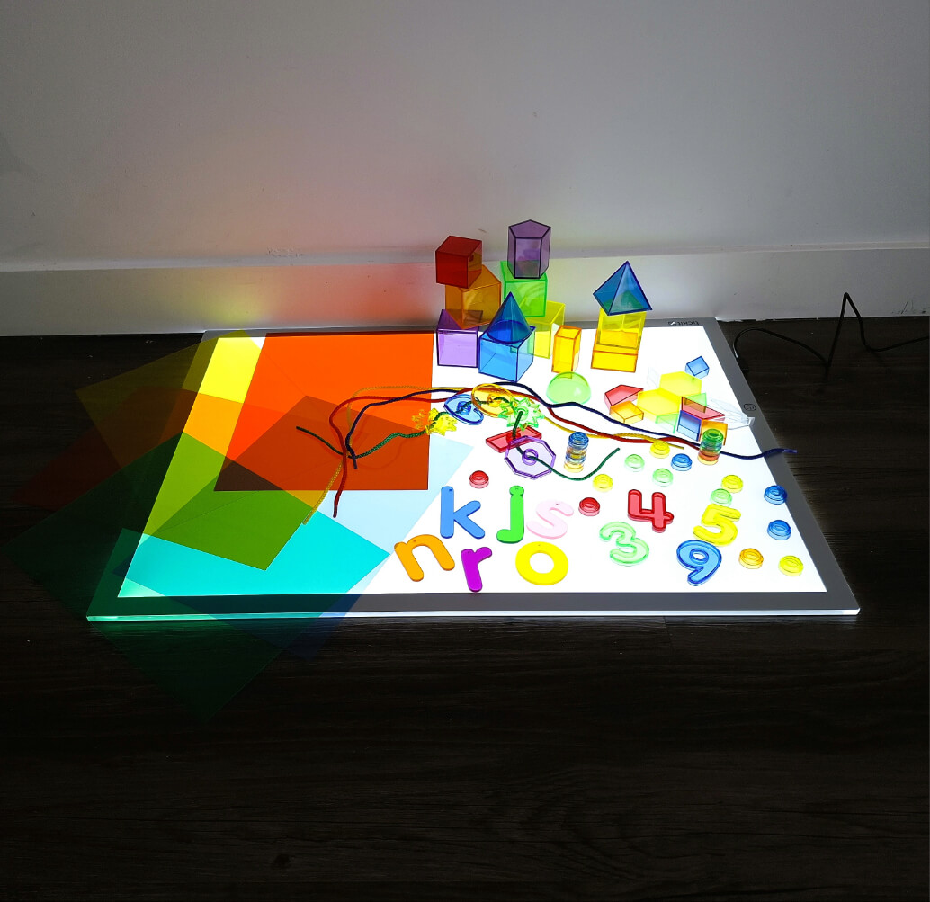 Door te werken met de lichttafel ontwikkelen leerlingen hun visuele waarneming en ruimtelijk inzicht. Ze oefenen de fijne motoriek bij het leggen van figuren en het overtrekken van vormen. Door te sorteren, tellen en patronen te maken, worden ook rekenvaardigheden spelenderwijs geoefend. Daarnaast stimuleert de lichttafel creatief denken en ontdekken kinderen al doende hoe licht, kleur en doorzichtigheid werken. Het is bovendien een zintuiglijke ervaring die concentratie en rust bevordert.